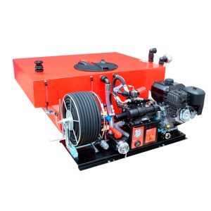 Kits de extinção de intervenção rápida desenhados para veículos PickUp e reboques, equipados com bomba de pistões até 100 Bar com um caudal máximo até 42 l/min.