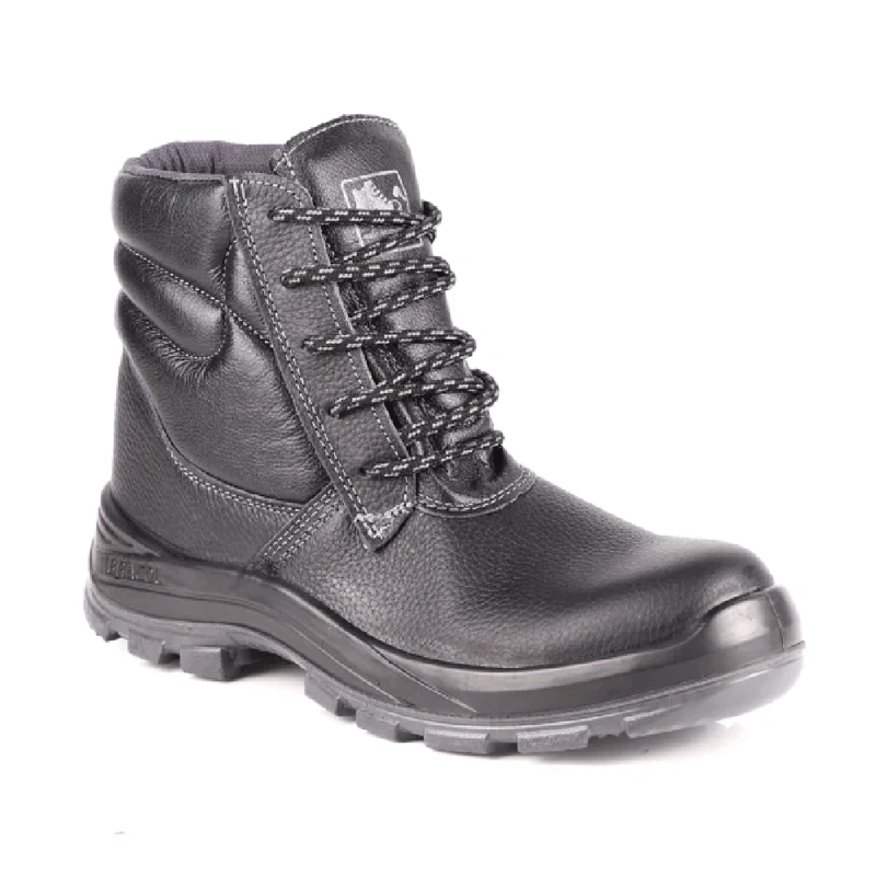 Biqueira de segurança em composite, deixando o calçado mais leve e com resistência ao impacto com energia de 200 joules e resistência à compressão com força de 15 KN.